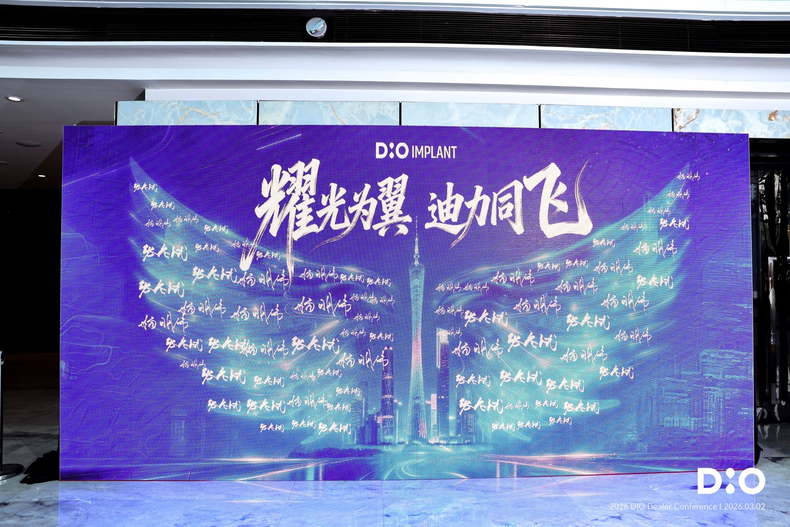 2026年3月2日,DIO在广州四季酒店隆重举办“耀光为翼,迪力同飞”2026中国经销商大会暨UNICON种植体系统新品发布会。来自全国各地的核心经销商伙伴齐聚一堂,共同回顾过去一年的成长与成果,也共同见证DIO在中国市场迈向新阶段的重要时刻。