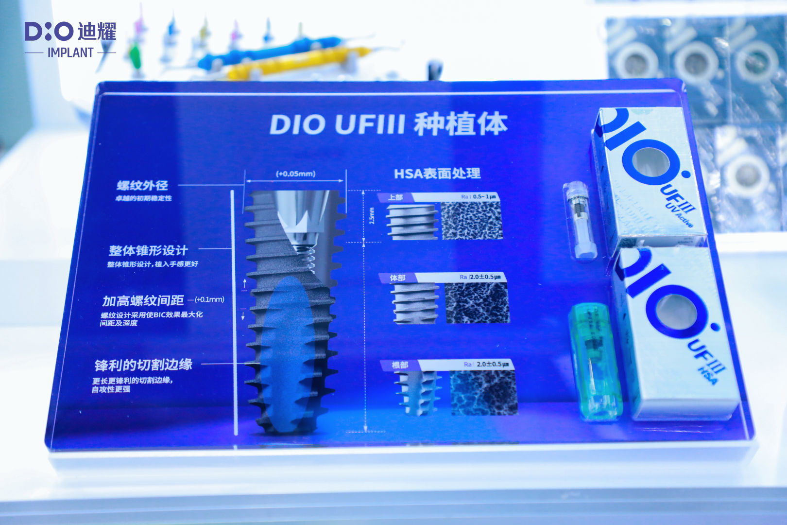 UV亲水植体与UV Activator 3光照机:DIO持续推进植体表面技术升级。此次展出的UV亲水植体结合全新升级的安瓿瓶设计,并与第三代UV Activator光照设备更加适配,通过增强植体表面活性,为骨结合过程创造更加理想的条件。